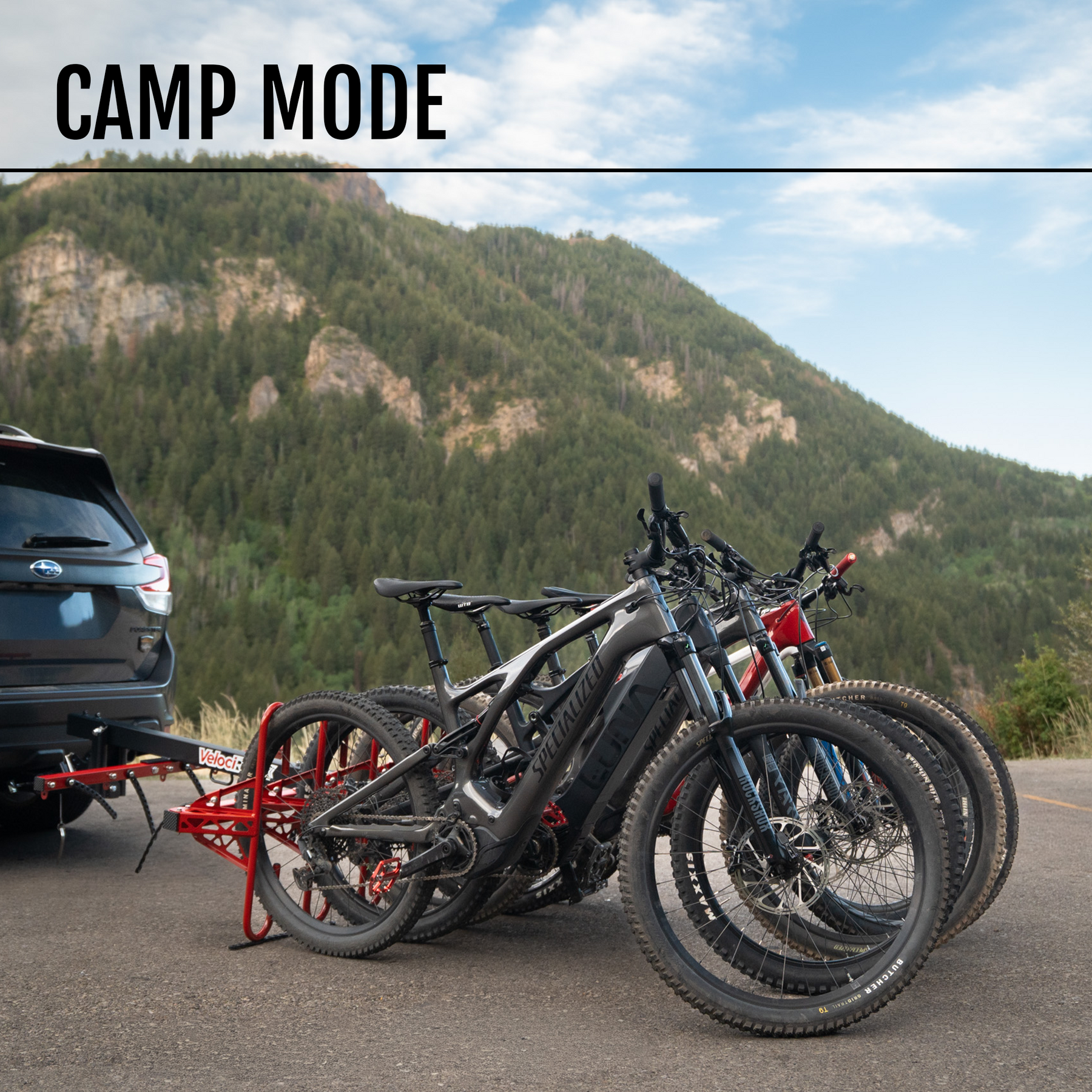 - Camp Mode for easy bike racking while in place and full access to rear of any vehicle
