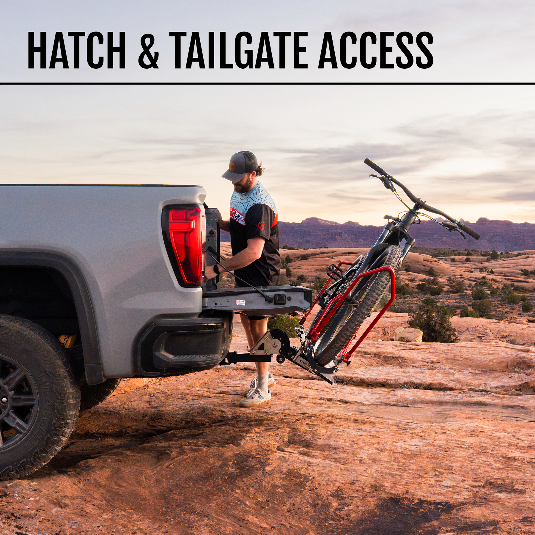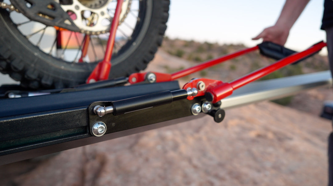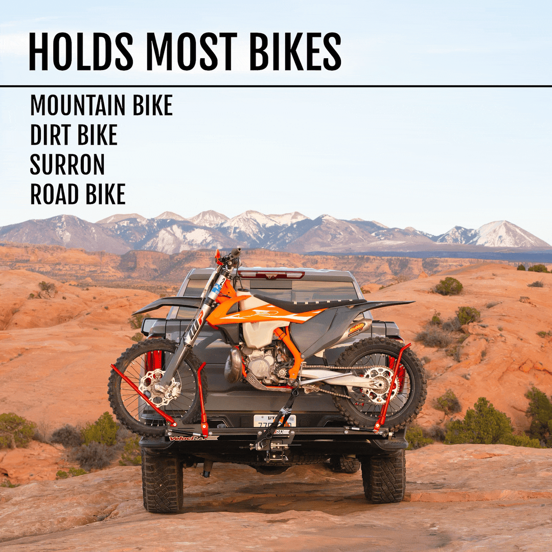Built as a heavy-duty hitch bike rack for e-bikes and dirt bikes, RAXzilla can carry up to 275 lbs and works with everything from lightweight road bikes to full-size dirt bikes. The tire-only contact design protects your frame, while the adjustable tray positions make it easy to transport different bikes. Whether you're hauling a mountain bike, e-bike, or motorcycle-style dirt bike, RAXzilla is the ultimate single-bike hitch rack for heavy bikes. It's strong, simple, and incredibly fast to use.